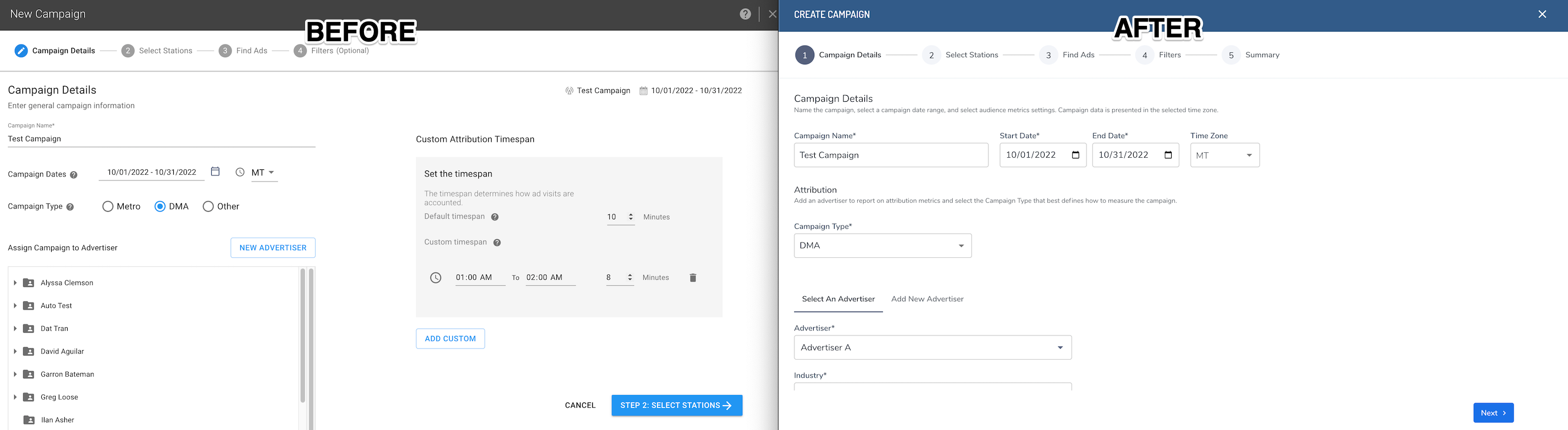 We are excited to announce key improvements to the Attribute application! Our latest update focuses on a brand new Campaign Creation flow. These enhancements make setting up your on-air Campaign simple and easy, as well as providing an additional summary step to ensure all your Campaign selections are correct.