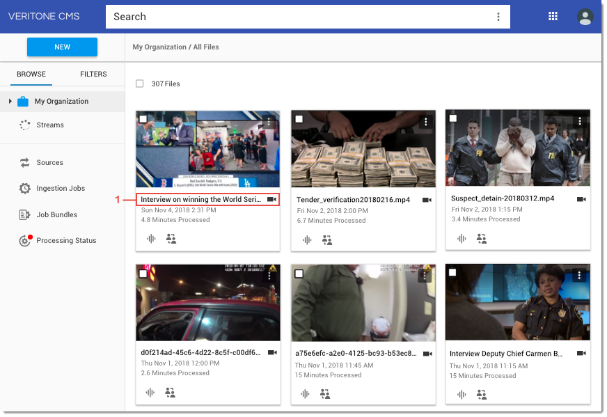 1. Click the filename from the Data Center homepage. The Media Details page opens.
