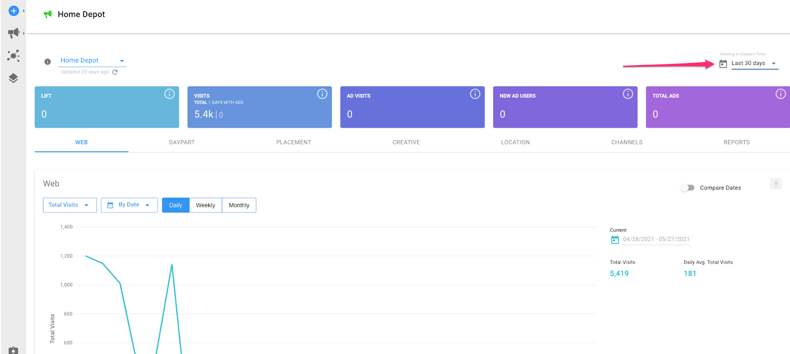 Ad visits by date