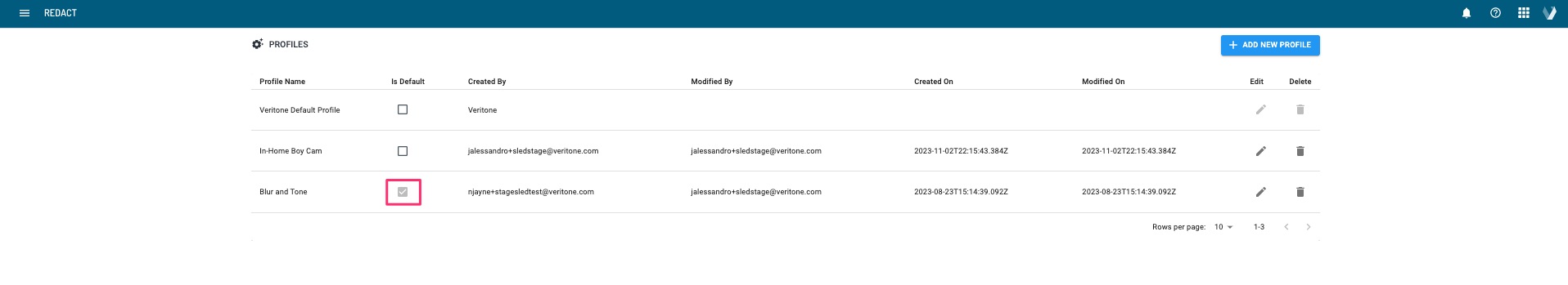 PRO-TIP: You can make one of your Settings Profiles the default settings by selecting the associated checkbox on the Profiles page. Otherwise, Veritone’s settings will be the default.