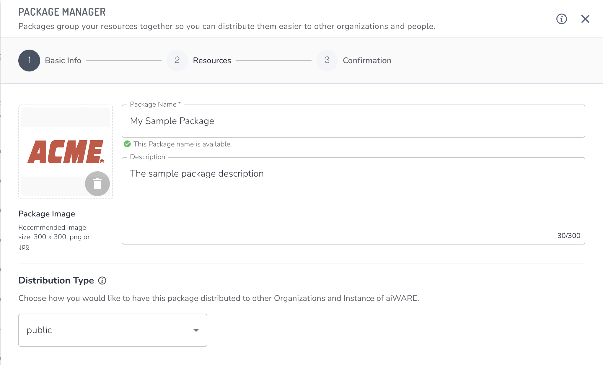 - Private - The package will not be distributed outside either the organization or the aiWARE instance it was created in.