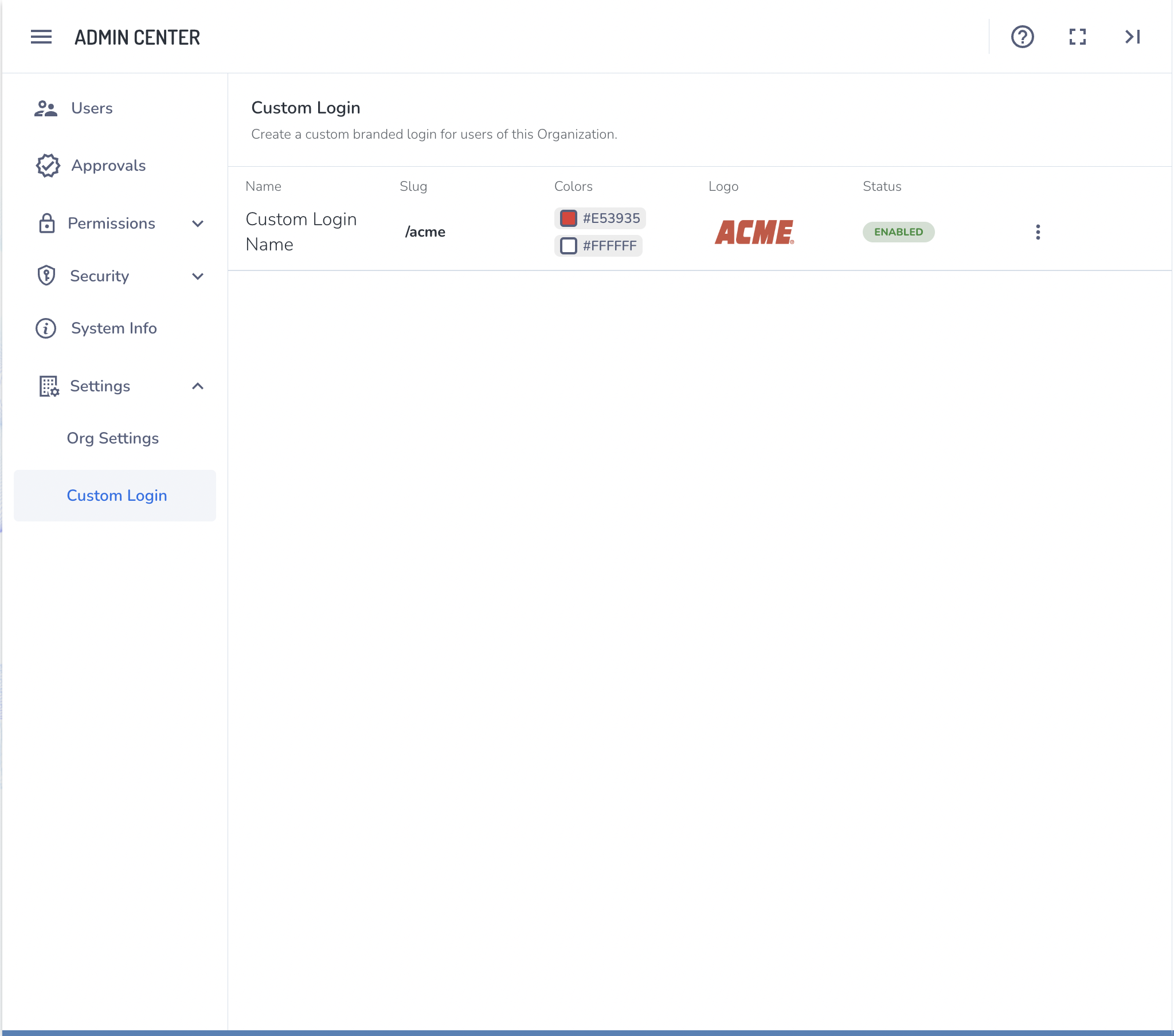 Org or instance admins can create a custom branded login page for your organization or instance with a unique URL of your choice. A custom login might look like this: