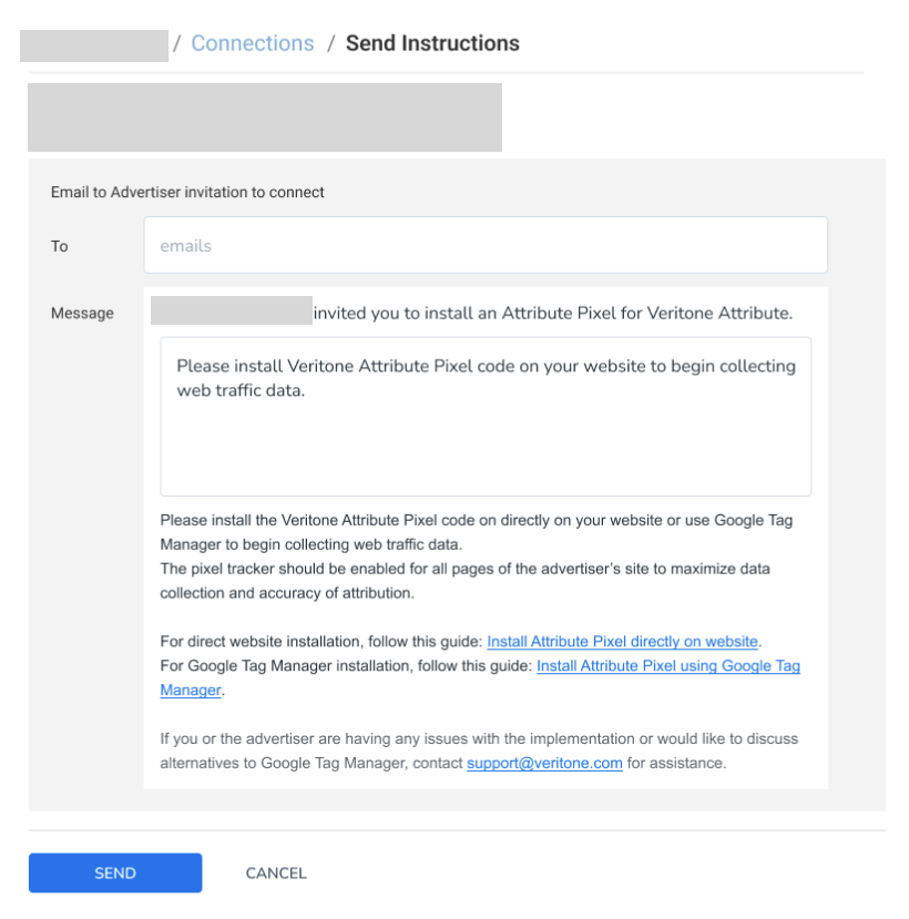 This option has now been added to the application UI and email invites so an Attribute advertiser has the option to use Direct On Site implementation for Pixel installation.