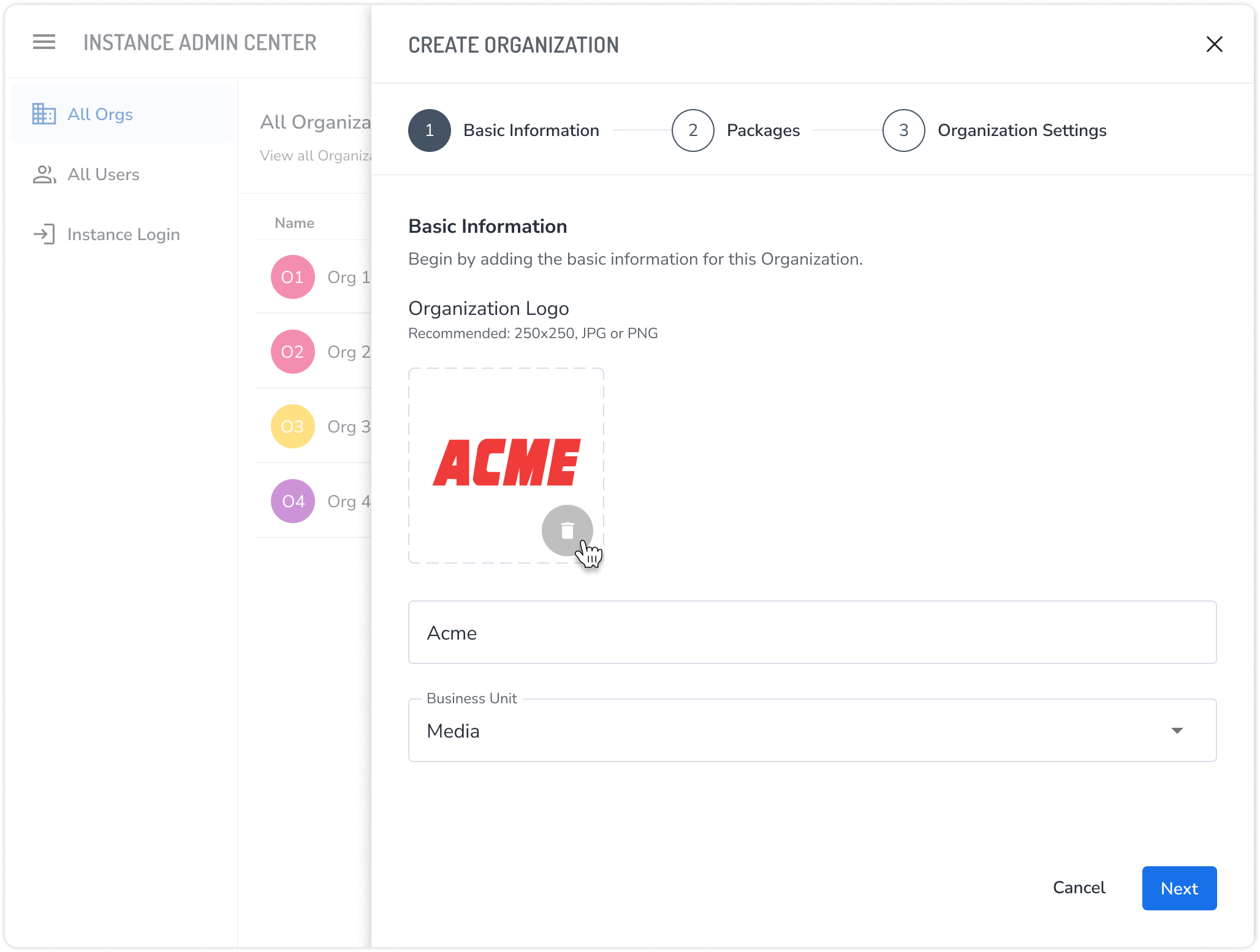 As an instance admin, you can view and manage all organizations within your environment. This allows you to see all details related to each organization, including its users, provisioned products, and settings.