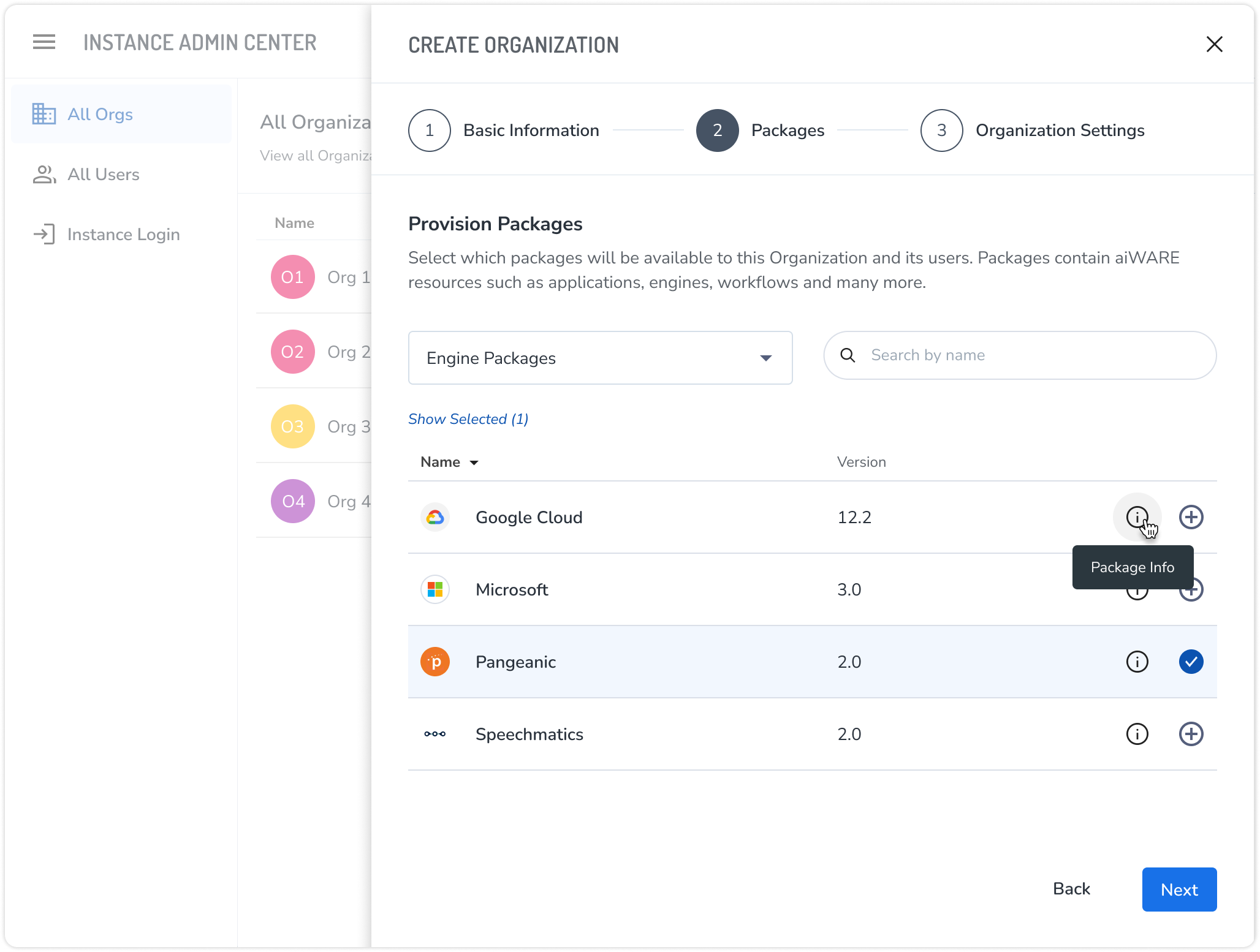 Packages grant users in an organization access to various aiWARE resources. Setting the initial applications and engines available for use within the organization is important for setup.