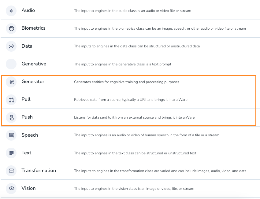 | Private | The engine will not be distributed outside either the organization or the aiWARE instance it was created in. |