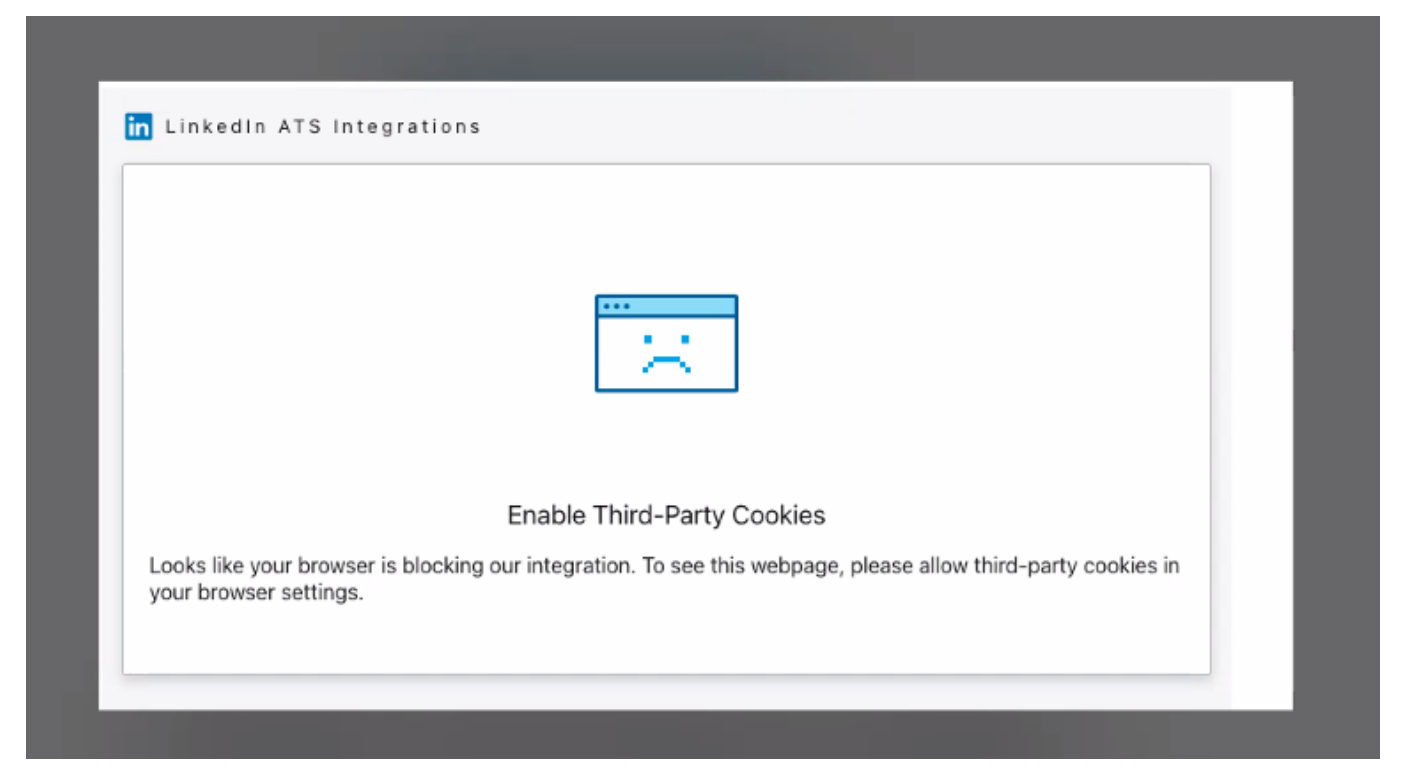 A: 3rd party cookies need to be enabled in the browser for the LinkedIn widget to properly load. Once you have enabled the cookies, please reload the widget and try again. (see below resources for answer)