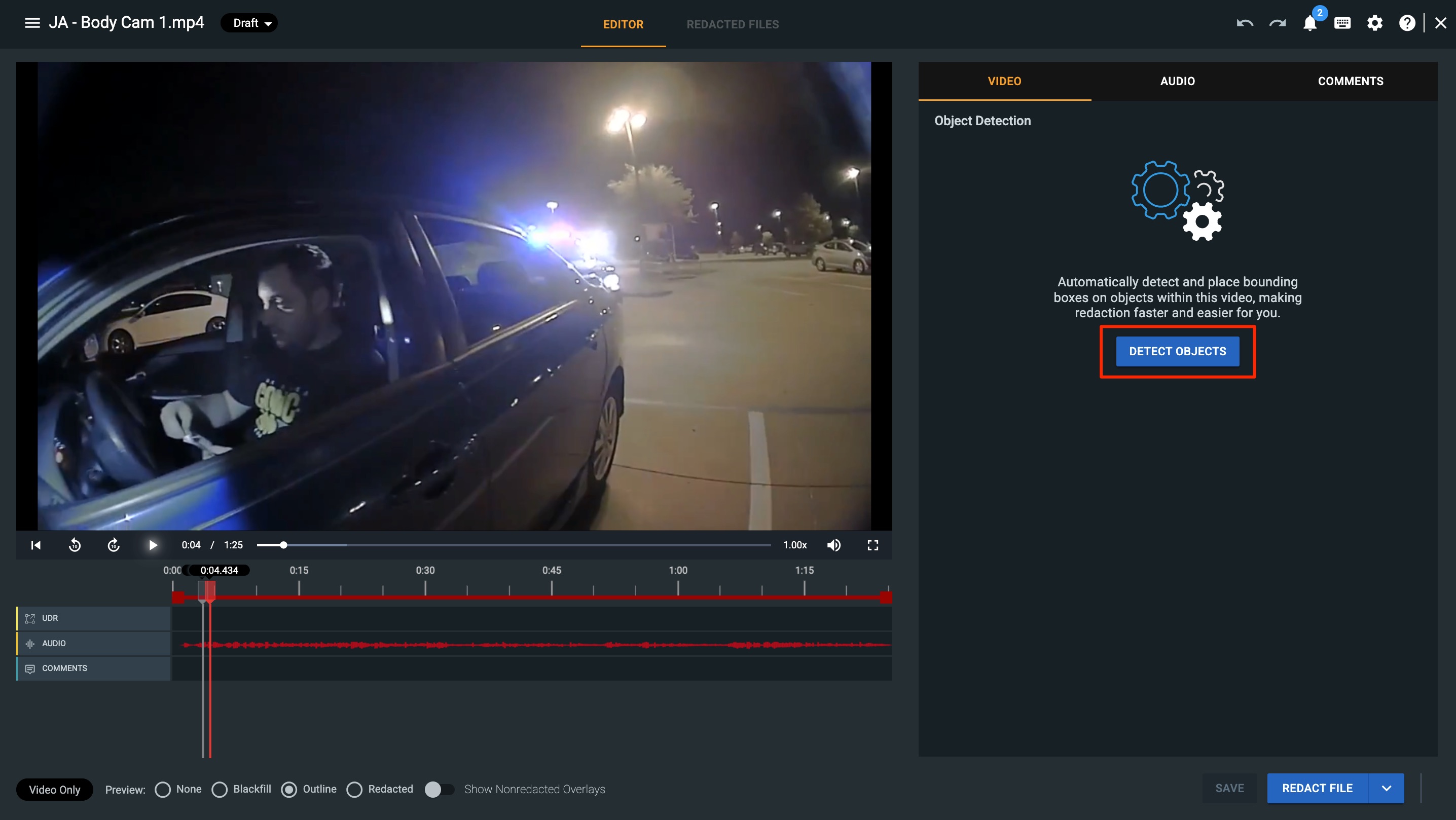 Veritone Redact’s Head, Person and Objects Detection engine works by scanning through your video frame by frame, looking for any heads, persons, laptops, license plates/vehicles, and notepads. For more information about how Veritone Redact’s detection engine works, please visit our help article Redact’s Engines and Auto-Detections.