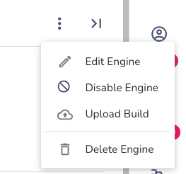 - You can delete a build by using the Delete Engine command in the flyout menu (see below). The build numbering continues from where it left off.