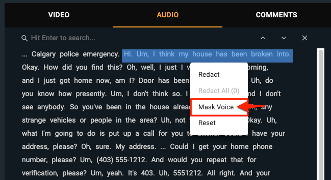 Note: If your agency would like Voice Masking added to your account, please contact your Customer Success Manager or our Support Team at support@veritone.com.